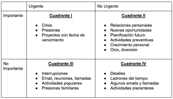 ¿Has visto antes la matriz de administración del tiempo que te muestro en la imagen?